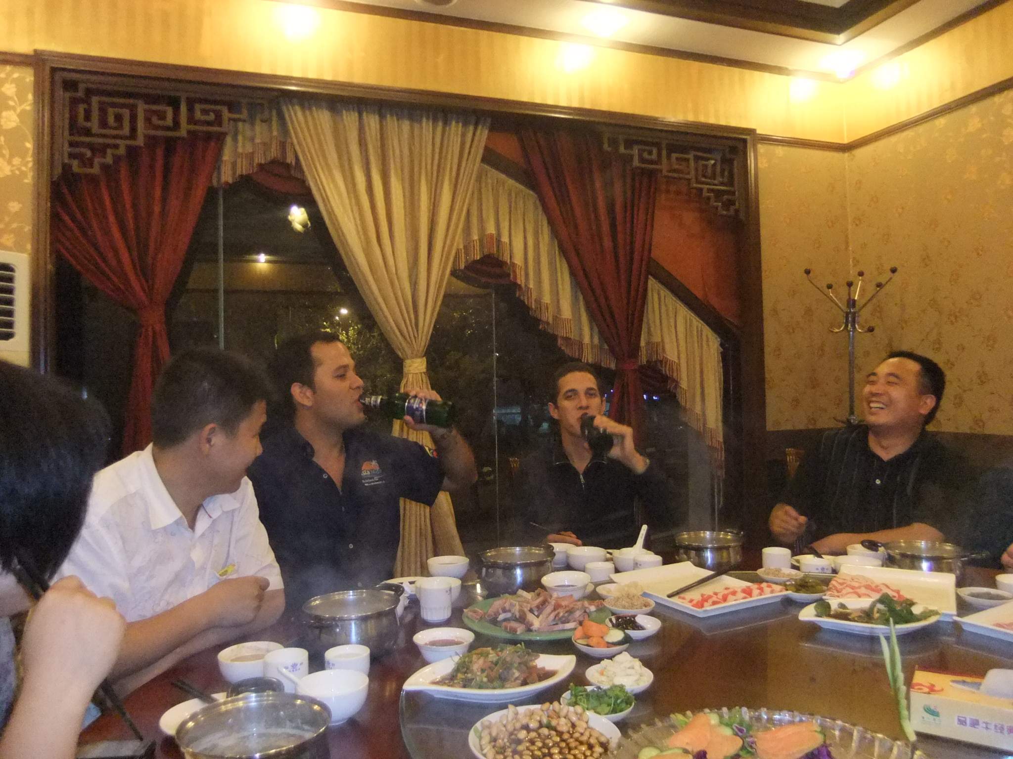 ??? 實驗期間,物料篩分效果良好、篩分質(zhì)量穩(wěn)定,得到了來自大洋彼岸的朋友的稱贊。晚上我們公司的工作人員和委內(nèi)瑞拉的朋友暢飲狂歡,外國朋友學(xué)會了中國的“干杯”,而我們也知道了“沙路”(下圖,委內(nèi)瑞拉客戶此行我公司很滿意,迫不及待的“沙路”)